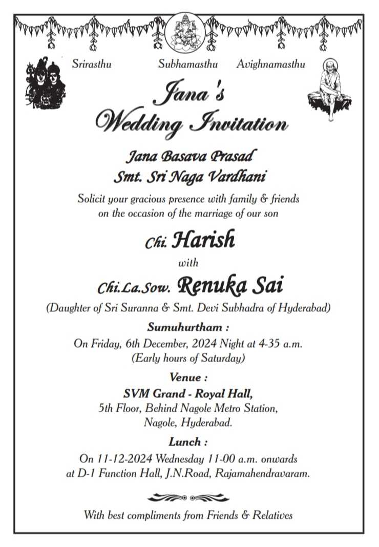 Sumuhurtham - 4.35 AM IST, (Early hrs of Saturday), SVM Grand, Nagole.